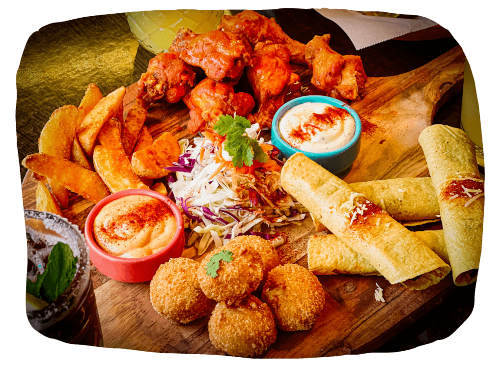 Beef Flautas (4), Wings (6), Jalapeno Bites (5) & Wedges served w salad, ranch & baja sauce (serves 3-5) LN