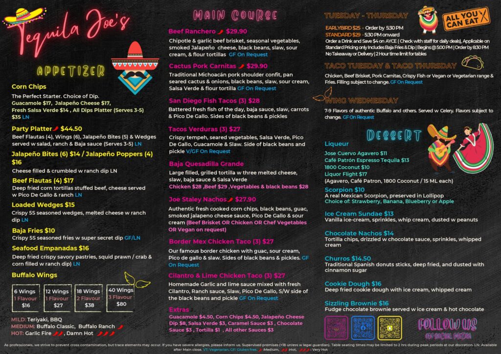 If you have any severe allergies, please inform us. Supervised premises (18+ unless w legal guardian). Table seating times may be limited to 2 hours during peak periods at the our discretion.